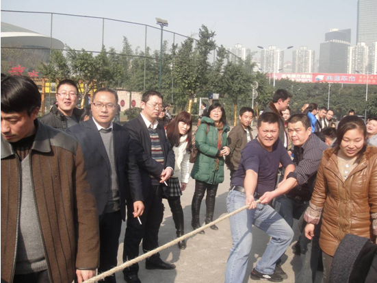 2014年1月21日,由公司工程管理中心组织的拔河比赛于在市奥体中心隆重举行,参加比赛的团队有公司工程管理中心各职能部门及重庆区域各项目部团队,大家本着体育竞技的拼搏精神,经过一番角逐,万科城项目部夺得拔河比赛冠军。拔河比赛结束后,进行了2013年度公司羽毛球、乒乓球、篮球及拔河各项比赛的颁奖典礼。