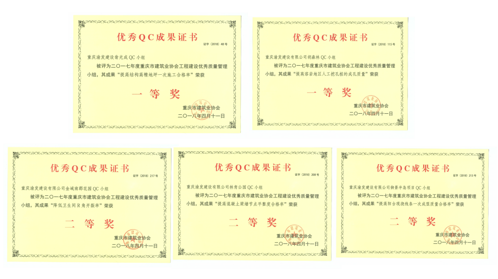 2018年4月12日,重庆市建筑业协会“2017年度建设优秀质量管理小组表彰暨成果发布会”隆重召开。重庆pg官网入口建设有限公司荣获“2017年度建设优秀质量管理小组”一等奖两名,二等奖三名。...
